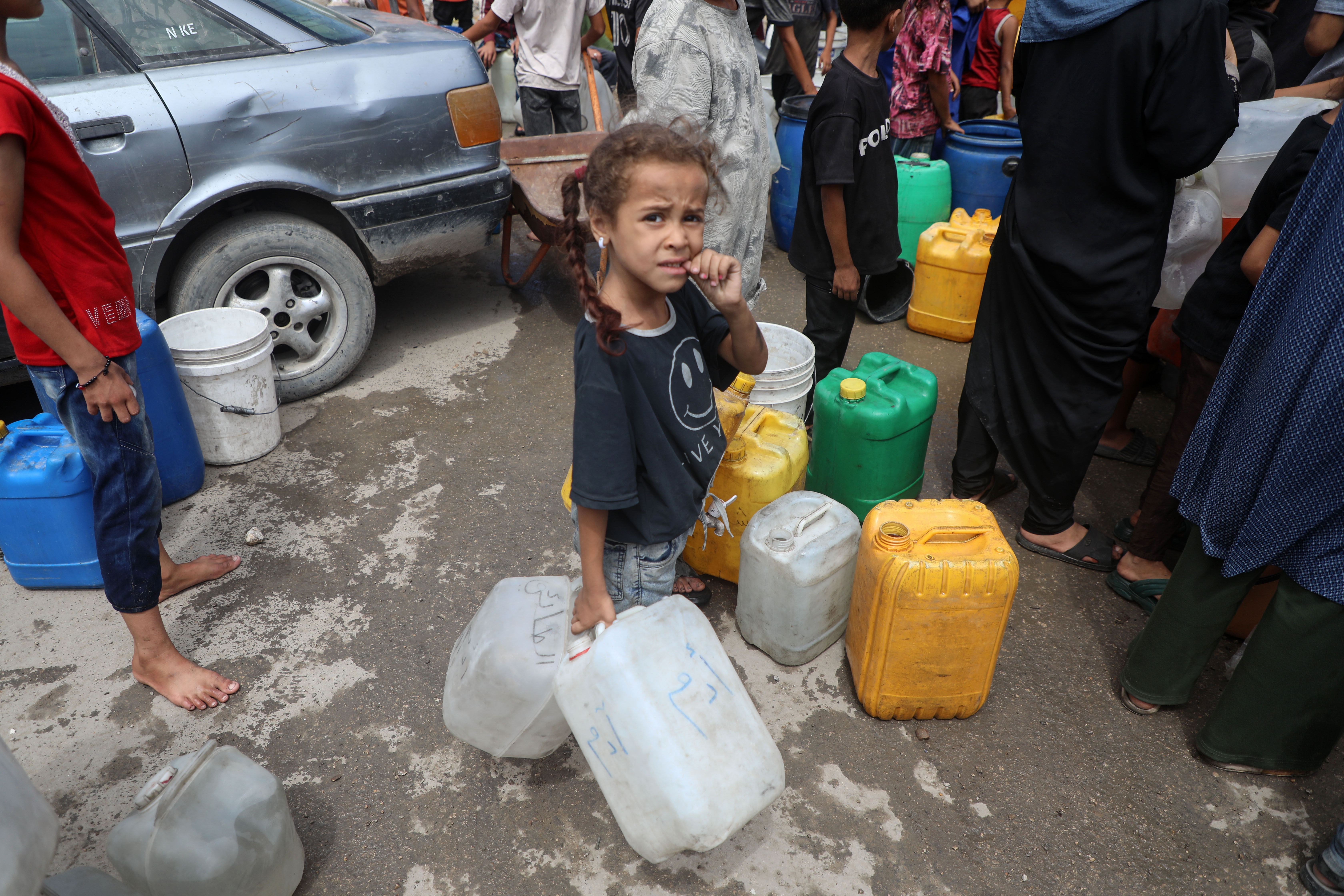 8月1日,民众在加沙城取水。新华社发(里泽克·阿卜杜勒贾瓦德摄)