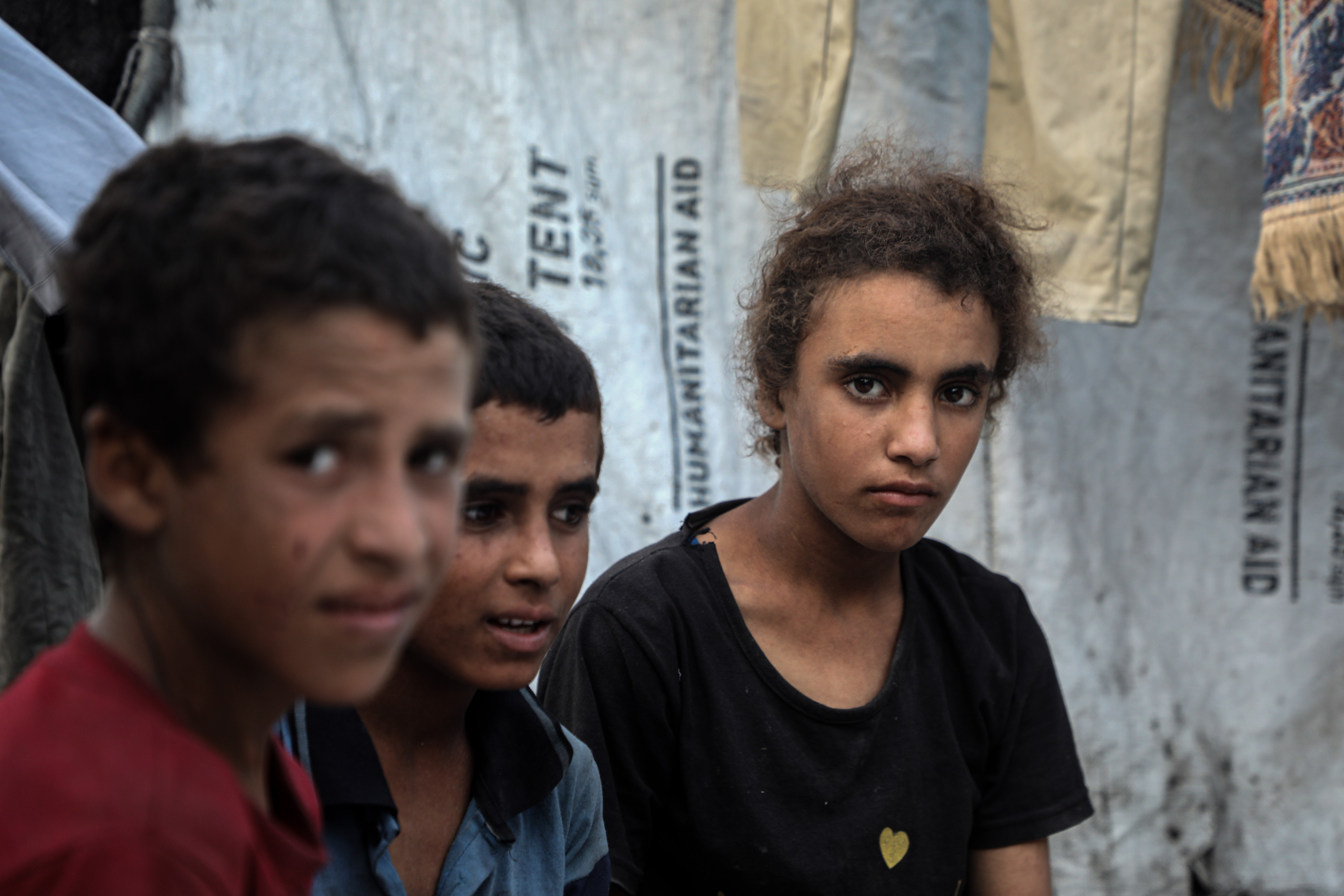 7月29日,孩子们坐在加沙城的一个帐篷里。当地许多家庭仅靠少许入境加沙地带的人道援助物资维系生存。新华社发(里泽克·阿卜杜勒贾瓦德摄)